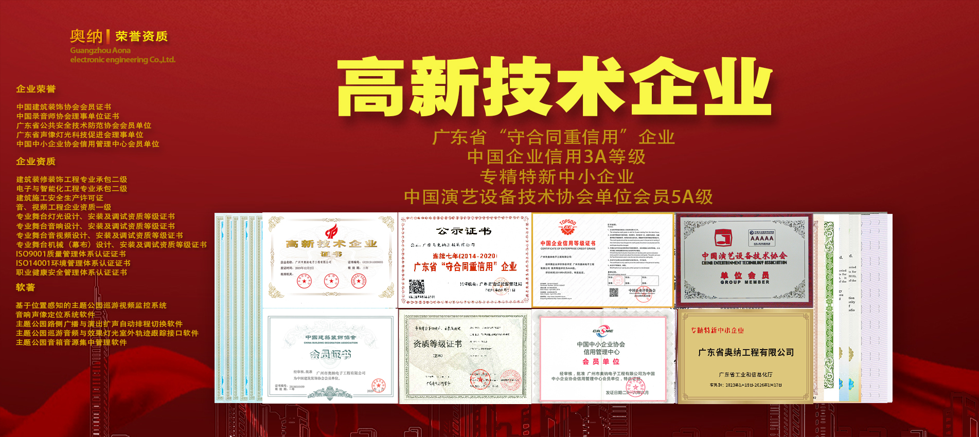 奧納工程深耕文化領(lǐng)域二十載,已成為行業(yè)最具影響力的一站式服務(wù)平臺。作為一家專注于“聲光像、智能化、聲學(xué)裝修、文化旅游”四大領(lǐng)域的高新技術(shù)企業(yè),奧納旨在為客戶提供從導(dǎo)演創(chuàng)編、顧問咨詢、創(chuàng)意策劃、技術(shù)方案到定制研發(fā)、產(chǎn)品供應(yīng)、工程施工及售后維護的全過程服務(wù)。